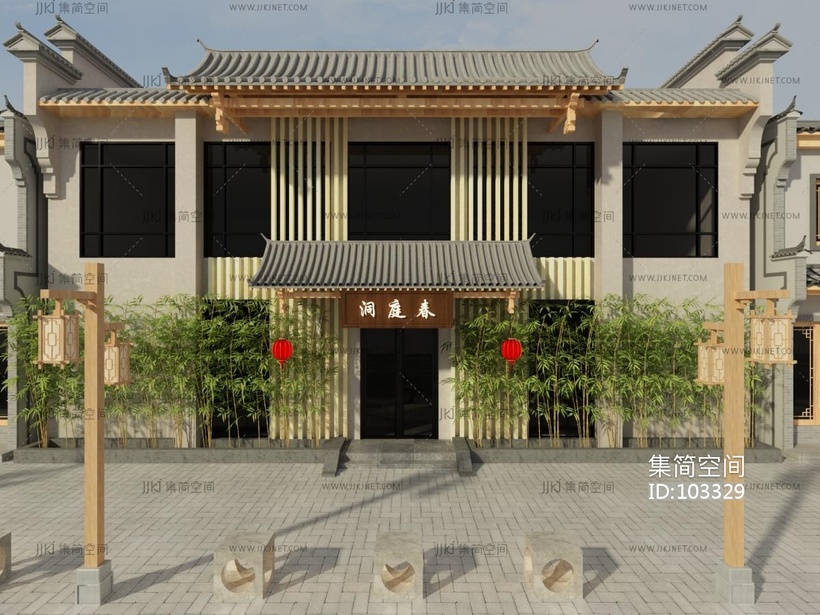 式古建别墅建筑入户门面,门头3d模型3d模型下载
