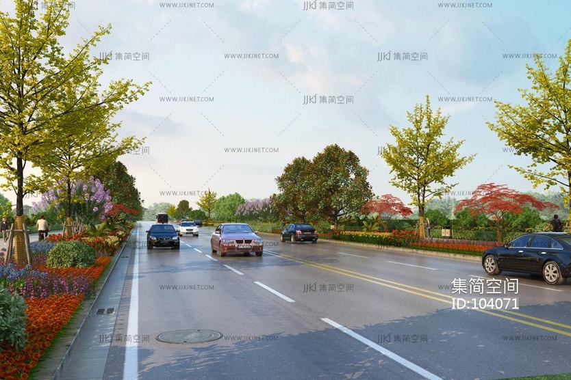 现代马路公路 ,汽车,树木 3d模型下载 [模型ID:104071]