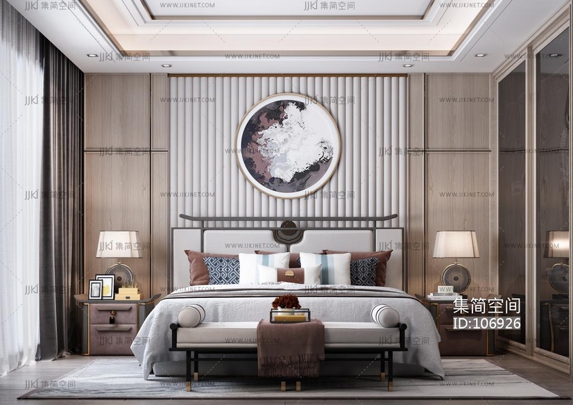 新中式样板间别墅 卧室 3d模型下载 [模型ID:106926]