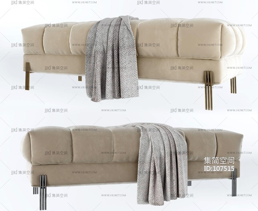现代绒面布艺沙发凳,尾凳,脚踏 3d模型下载 [模型ID:107515]