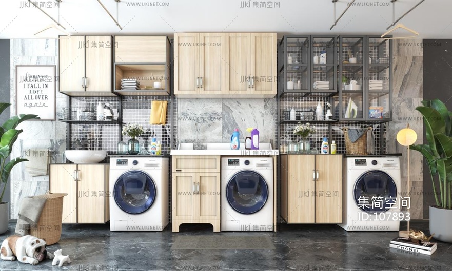 现代阳台柜 洗衣机柜 洗衣机 3d模型下载 [模型ID:107893]