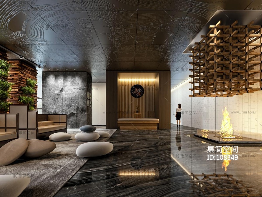 新中式酒店休闲区 3d模型下载 [模型ID:108349]