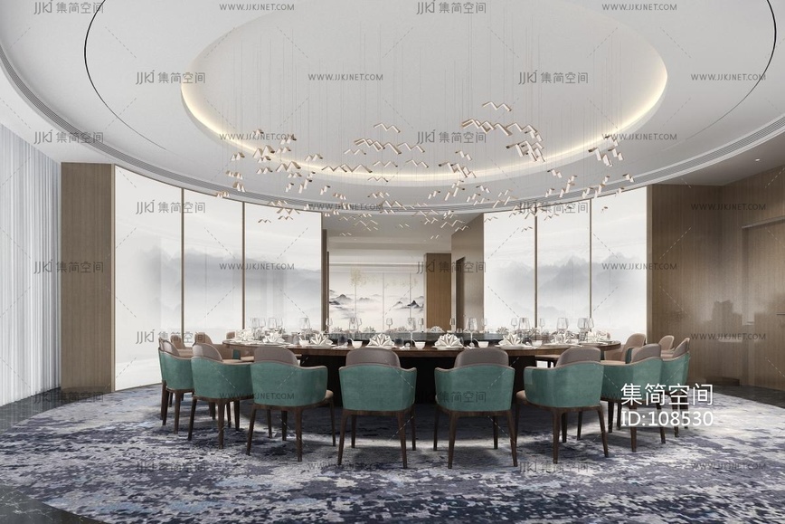 新中式轻奢酒店,餐厅,包房,包间, 3d模型下载 [模型ID:108530]