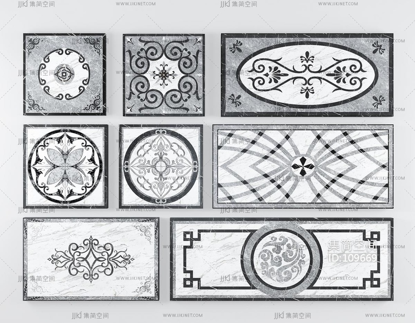 新中式欧式大理石地面拼花,瓷砖, 3d模型下载 [模型ID:109669]