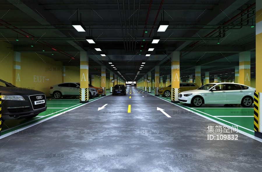 Z13-0524现代停车场地下车库汽车3d模型下载