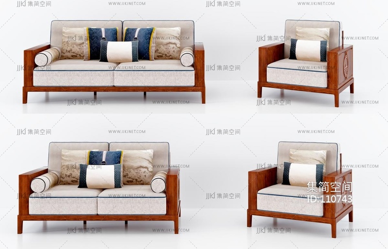 新中式国企党政机关双人沙发 3d模型下载 [模型ID:110743]