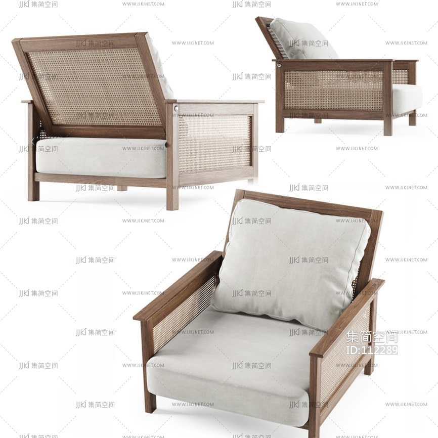 现代藤编单人沙发 3d模型下载 [模型ID:112289]