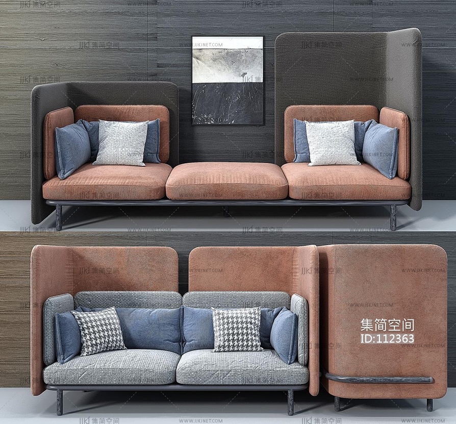 现代沙发卡座,高靠背沙发 3d模型下载 [模型ID:112363]