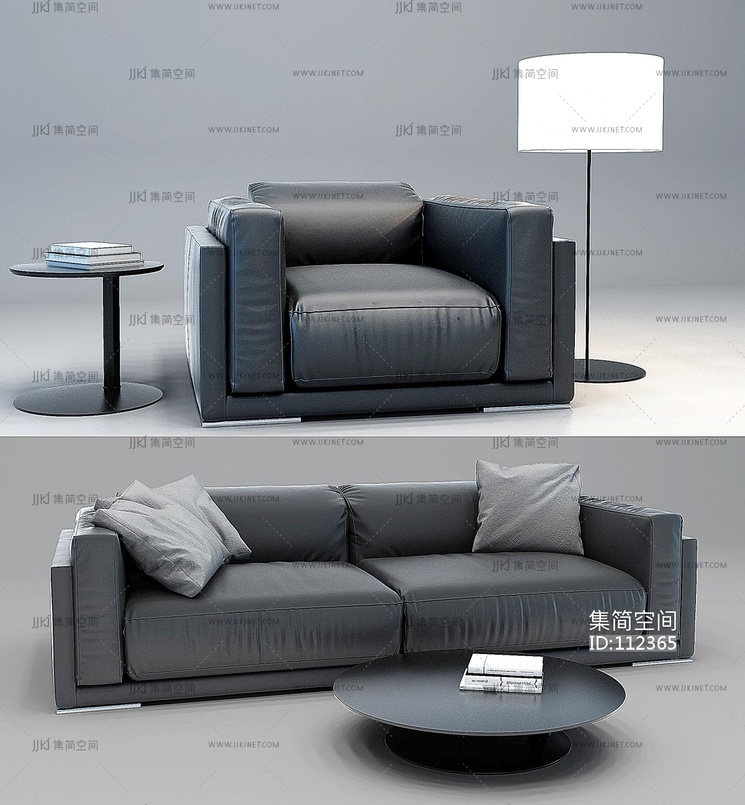 002皮革沙发办公沙发单人沙发茶几-063d模型下载