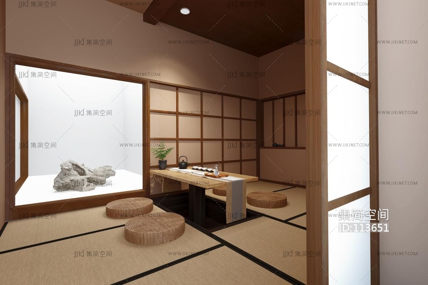 新中式茶室 茶桌 ,藤编编织吊灯,竹竿3d模型下载