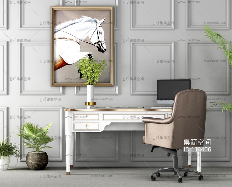 现代奶油风书桌椅,3d模型下载