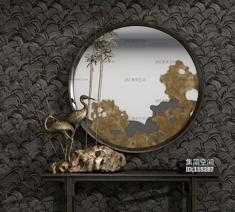 新中式条案条桌陈设品组合、端景台、鹤 3d模型下载 [模型ID:115287]
