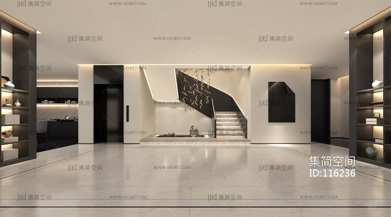 现代会所楼梯间 过道 3d模型下载 [模型ID:116236]
