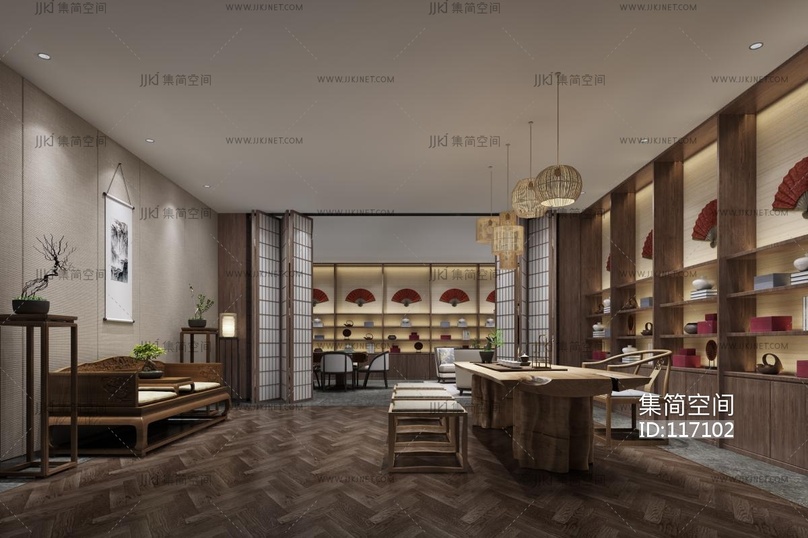 新中式茶室 3d模型下载 [模型ID:117102]