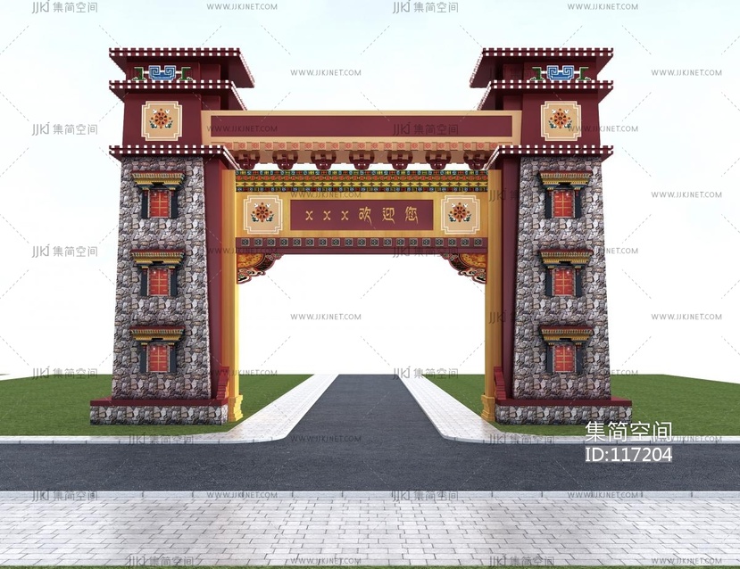 民族风藏式牌楼牌坊 3d模型下载 [模型ID:117204]