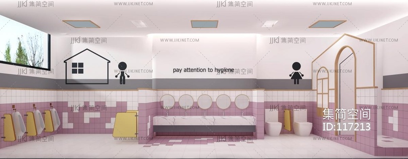 现代幼儿园卫生间 3d模型下载 [模型ID:117213]