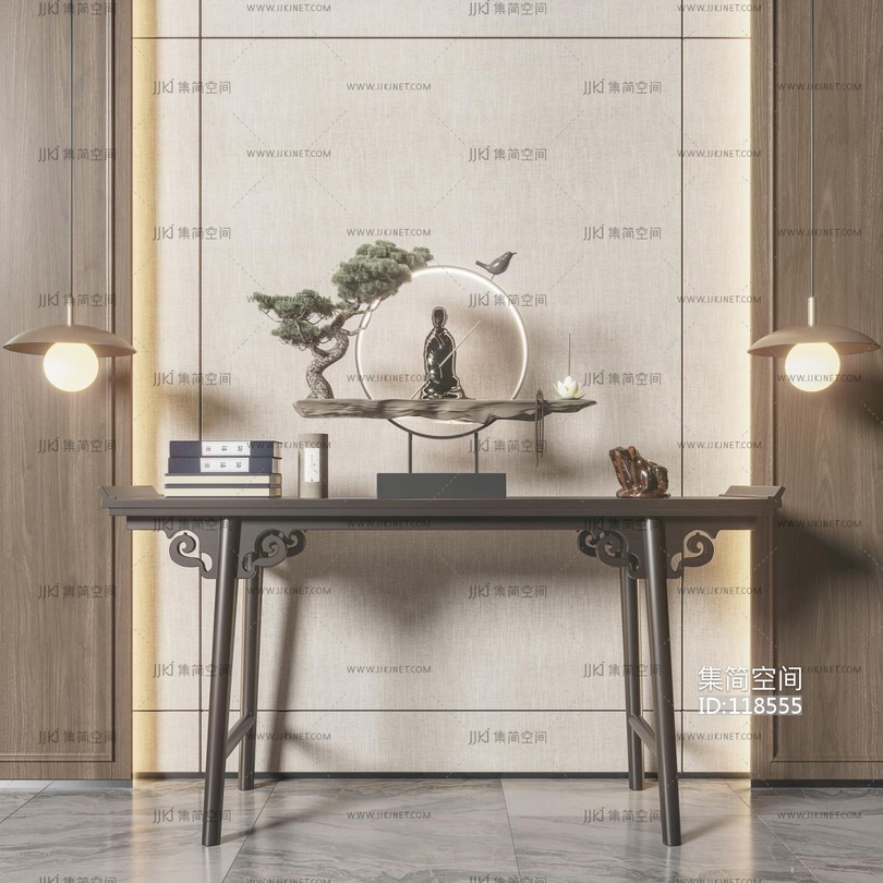 新中式玄关柜 3d模型下载 [模型ID:118555]