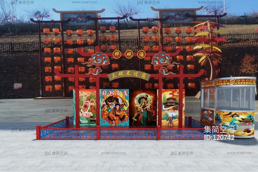 国潮舞台,美陈,灯笼 3d模型下载 [模型ID:120742]