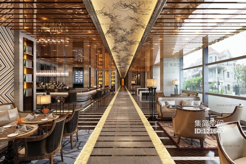 新中式现代酒店餐厅 3d模型下载 [模型ID:121640]