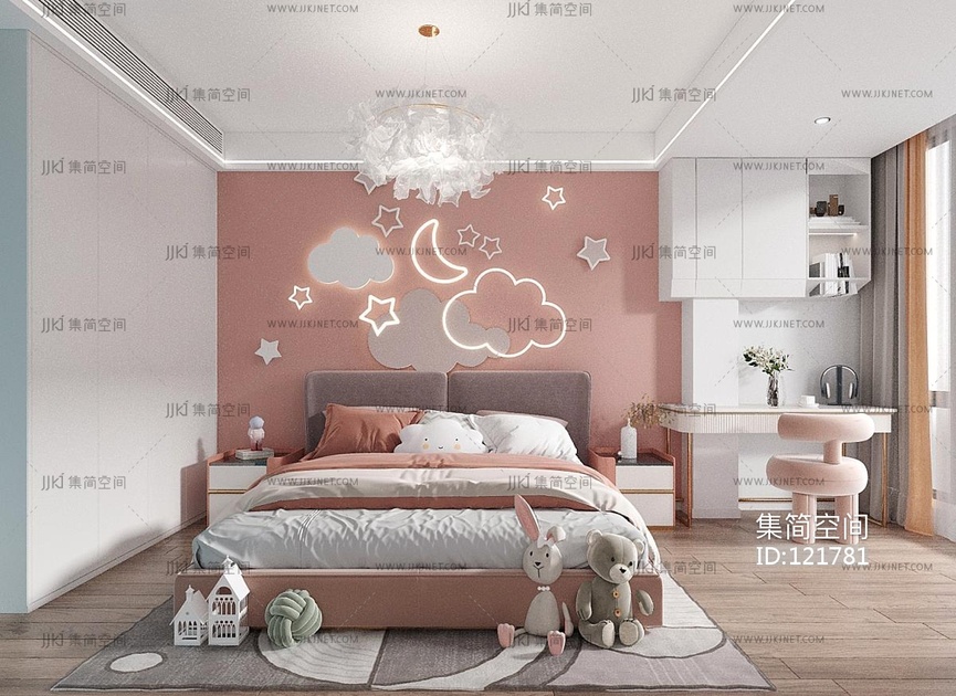 现代儿童房,女孩房,女儿房写字台毛绒玩具 3d模型下载 [模型ID:121781]