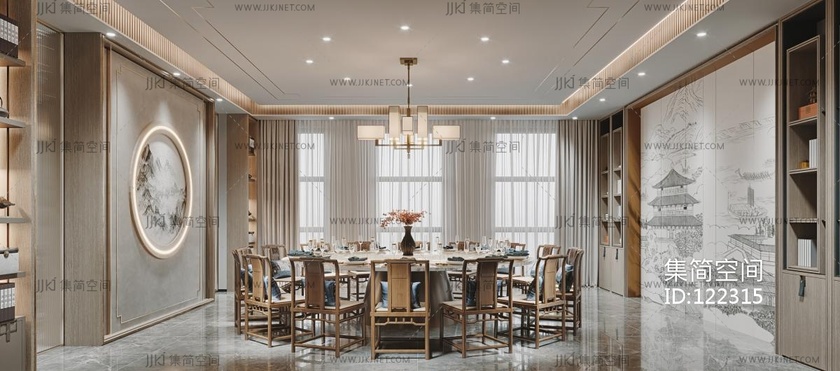 新中式包厢,包间圆形餐桌椅 3d模型下载 [模型ID:122315]