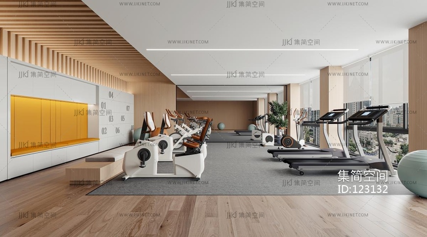 现代健身区,健身房 3d模型下载 [模型ID:123132]