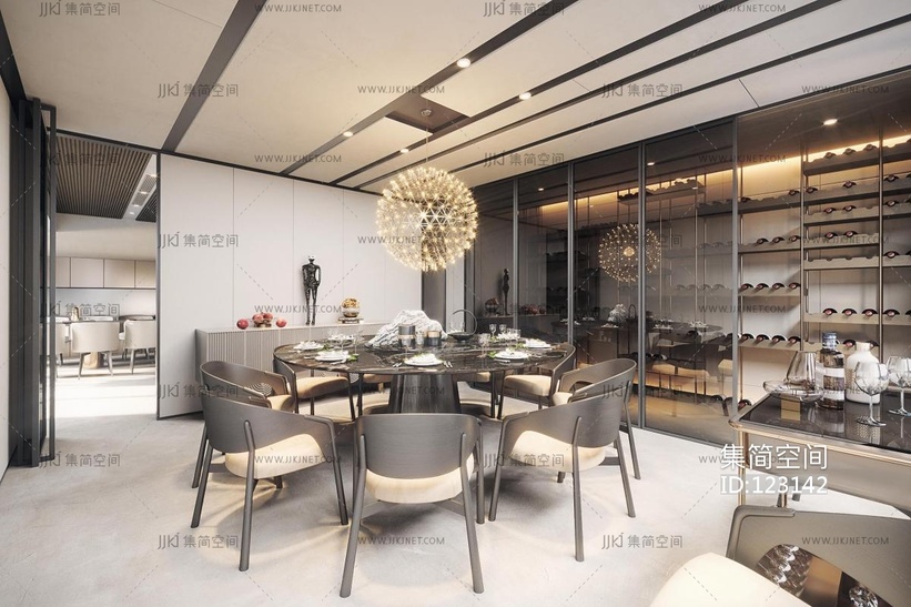 现代餐饮包间 3d模型下载 [模型ID:123142]