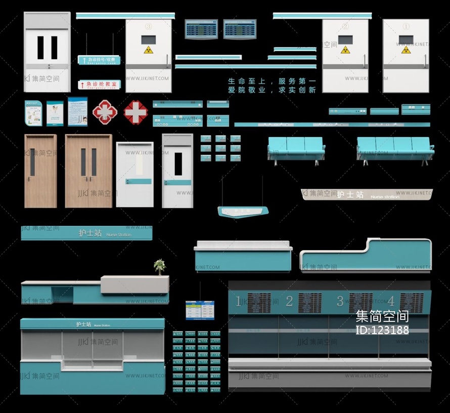 医院门标识标志前台,医院医疗设备防撞门,医疗带指示牌标识牌 3d模型下载 [模型ID:123188]