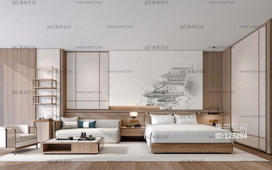 新中式酒店客房 3d模型下载 [模型ID:123294]