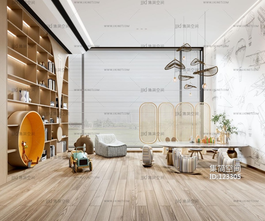 现代幼儿园,幼儿园活动室教师儿童区3d模型下载