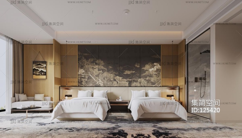 新中式酒店客房 3d模型下载 [模型ID:125420]