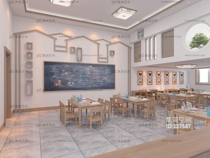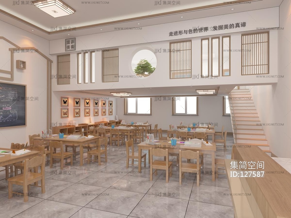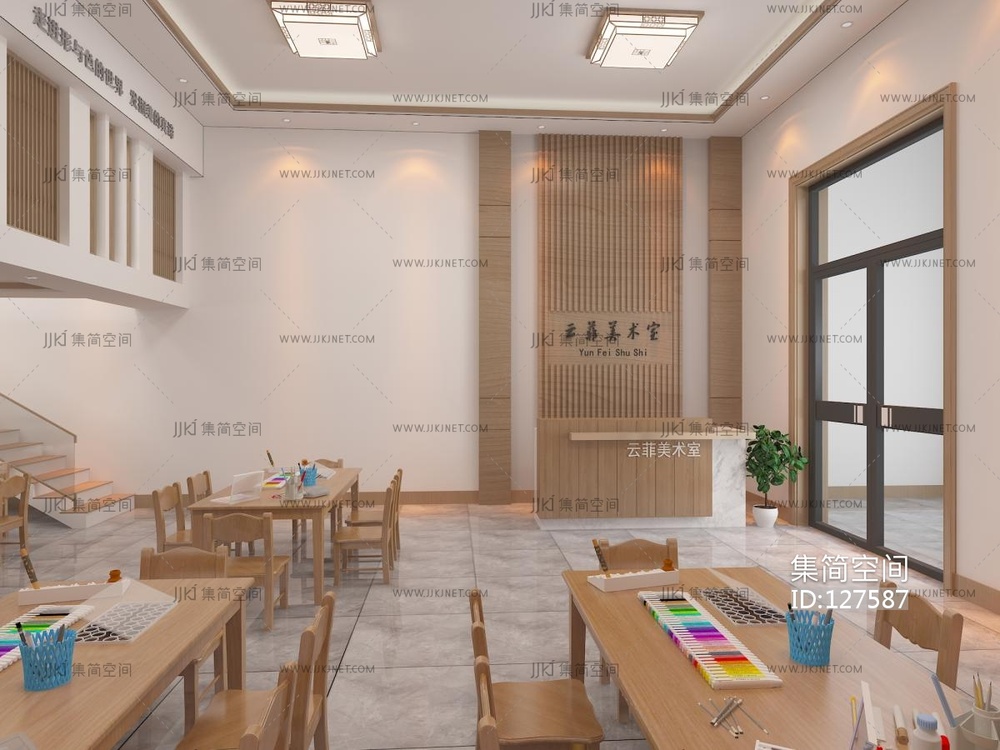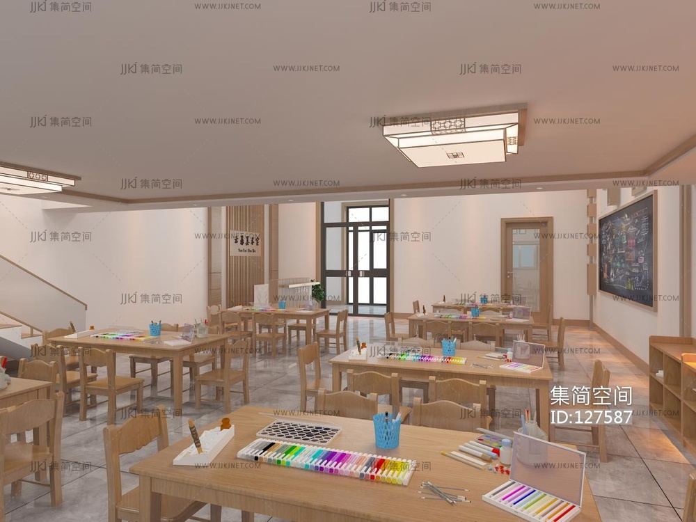 新中式儿童美术室 画室 3d模型下载 [模型ID:127587]