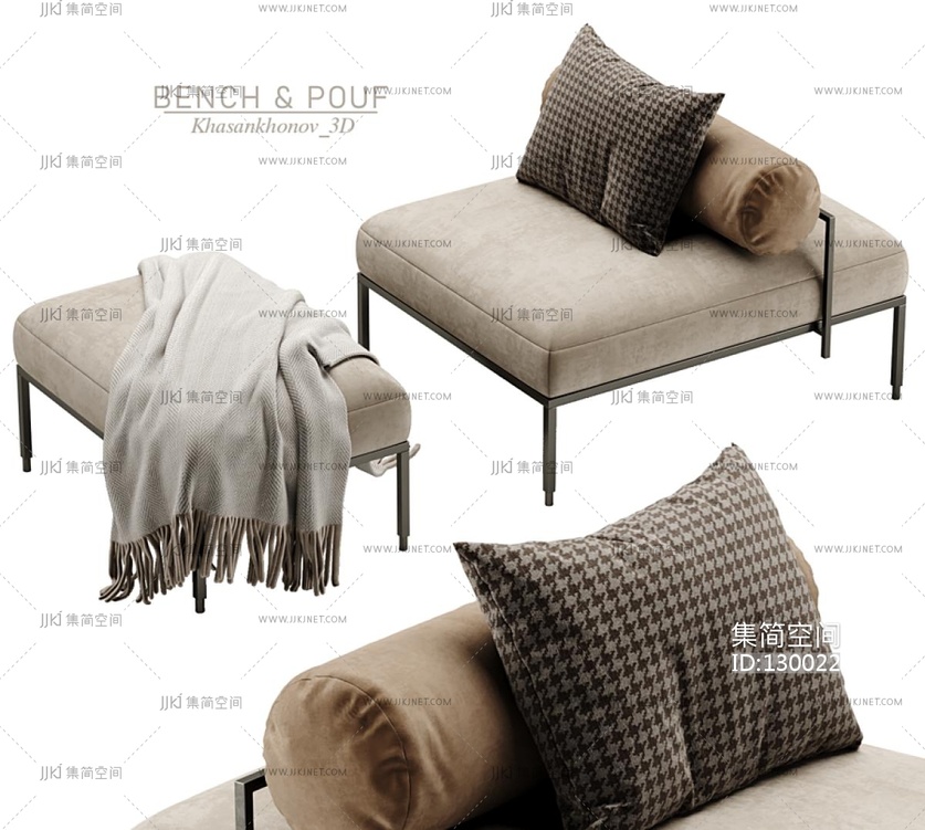 后现代床尾凳3d模型下载