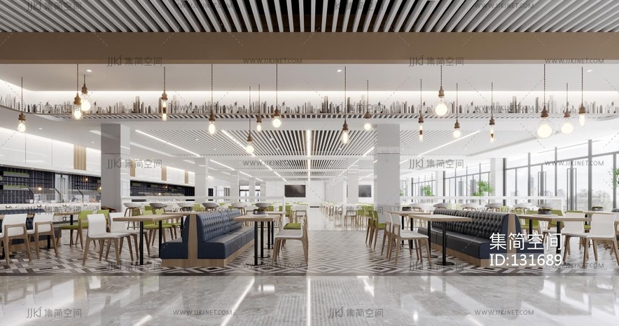 现代员工餐厅 3d模型下载 [模型ID:131689]
