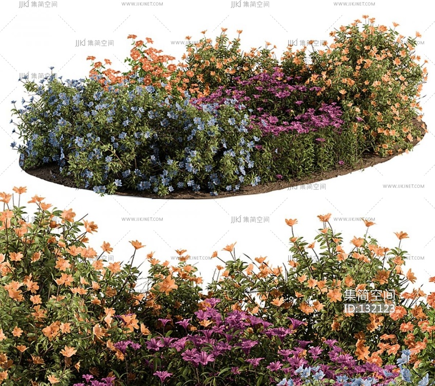 现代花圃灌木,绿植植物 3d模型下载 [模型ID:132123]