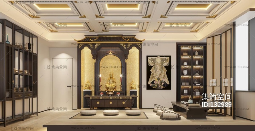 新中式佛堂 3d模型下载 [模型ID:132989]