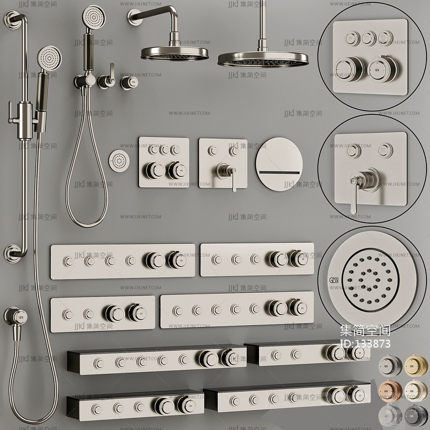 不锈钢花洒 淋浴喷头3d模型 3d模型下载 [模型ID:133873]