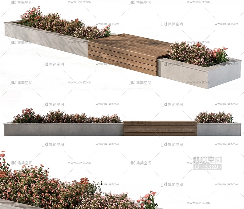 户外公共椅花池花槽3d模型 3d模型下载 [模型ID:133897]
