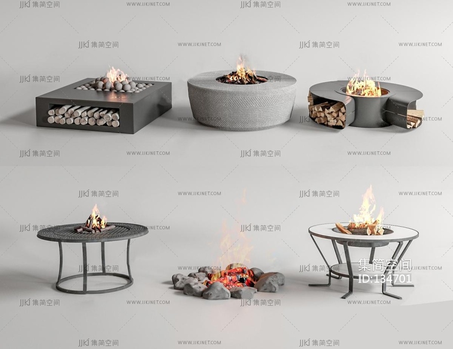 现代户外露营篝火,火盆火堆 3d模型下载 [模型ID:134701]