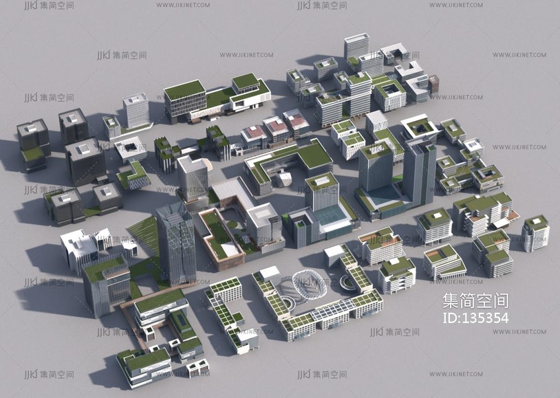 现代办公楼 配楼 鸟瞰 3d模型下载 [模型ID:135354]
