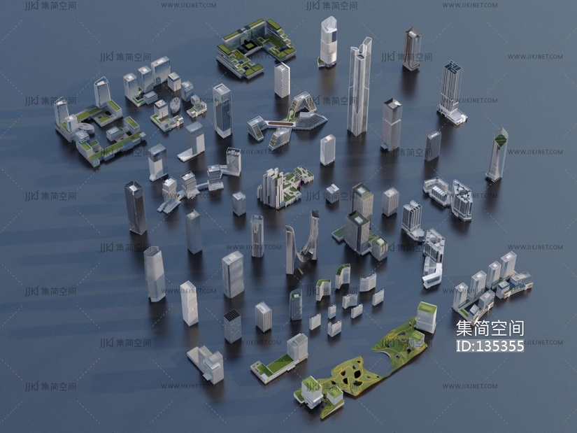现代城市 配楼,楼房 鸟瞰 3d模型下载 [模型ID:135355]