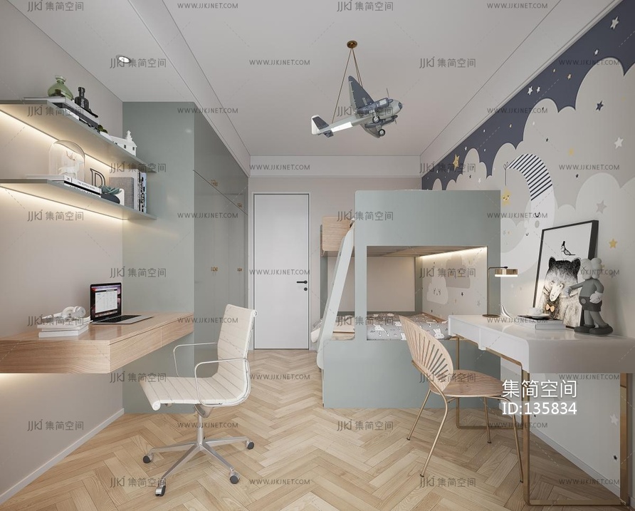 现代上下铺 儿童房 3d模型下载 [模型ID:135834]