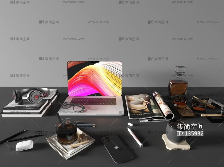 电脑桌饰品,办公用品 3d模型下载 [模型ID:135932]