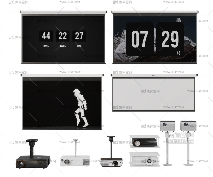 投影幕布投影仪3D模型 3d模型下载 [模型ID:136579]