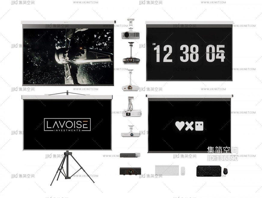 投影幕布,办公投影,投影机音响组合 3d模型下载 [模型ID:136890]