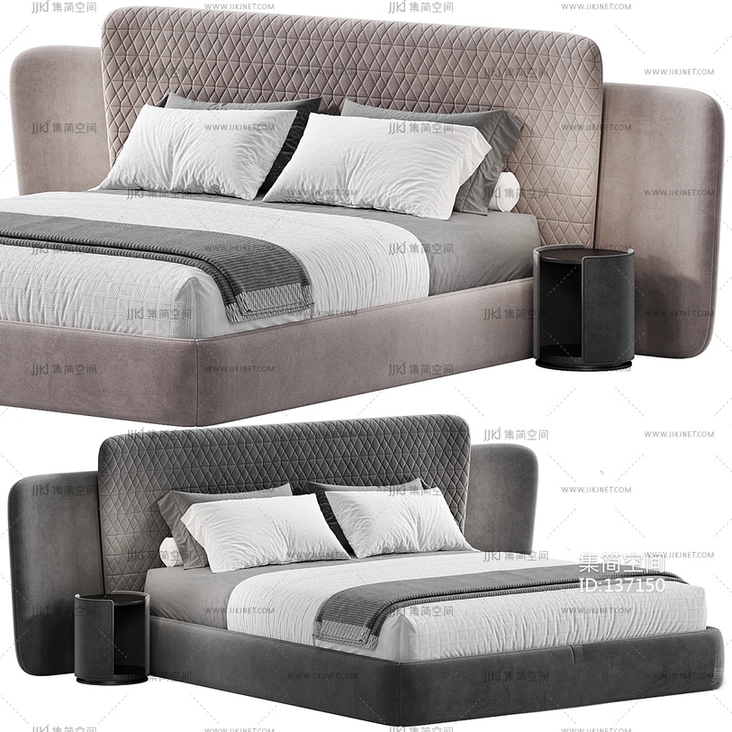 03-ITALINI现代布艺双人床3D模型3d模型下载