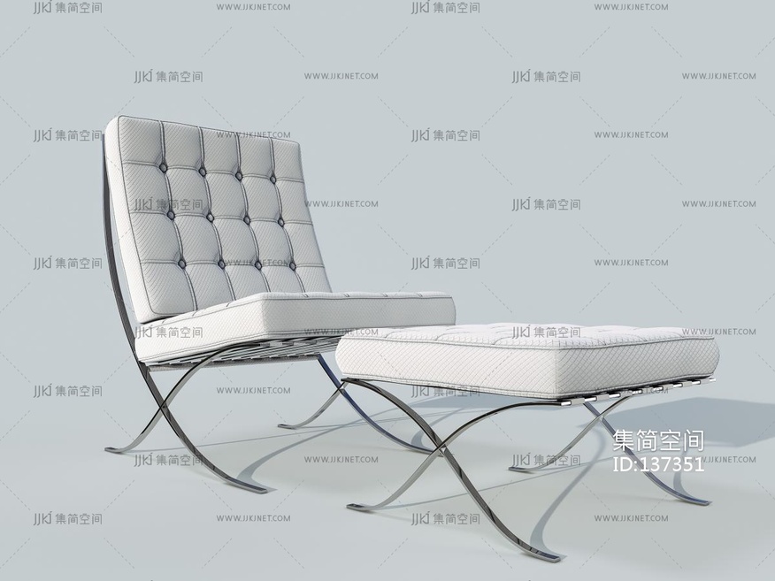 白色布艺金属躺椅 3d模型下载 [模型ID:137351]