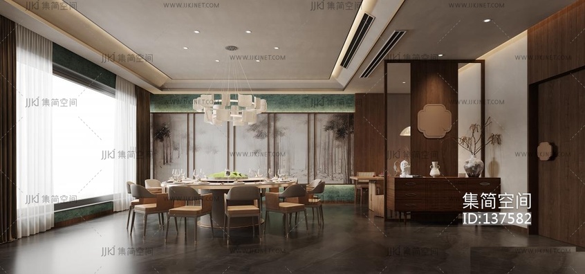 新中式餐饮包间3D模型 3d模型下载 [模型ID:137582]