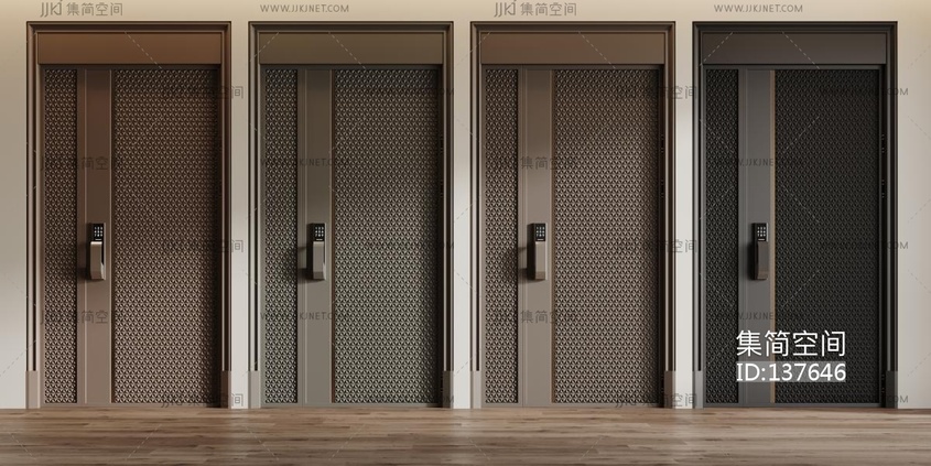 新中式单开门入户门_子母防盗门3D模型3d模型下载