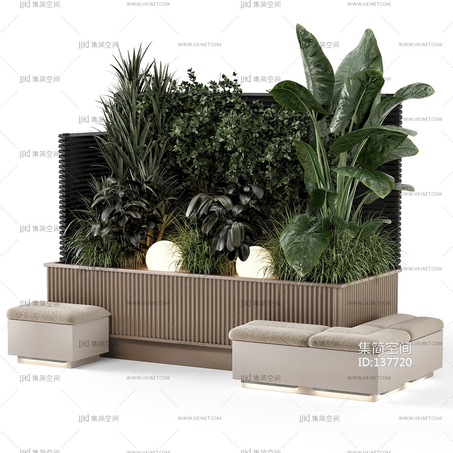 现代盆栽绿植卡座座椅 3d模型下载 [模型ID:137720]